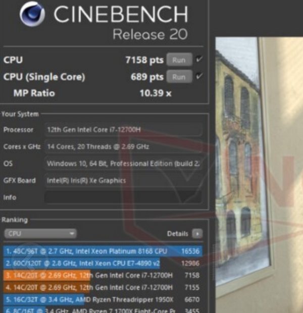 最终结果,在 Cinebench R20 中单核跑出了689 分,比酷睿 i9-11950H 快 12%,比 AMD 的旗舰锐龙9 5900HX 更是快了 21%。而在 Cinebench R20 多核测试中,得分为 7158 分,比 8 核 16 线程 Ryzen 9 5900HX 高 47%。