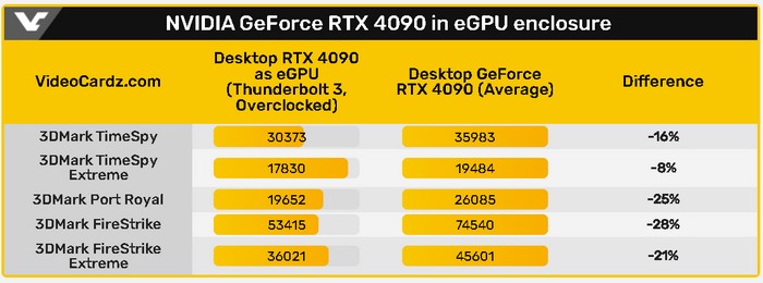 近日,外媒 VideoCardz 报道称,有玩家用华硕 Zenbook 14X Space Edition 笔记本搭 RTX 4090 的雷蛇 Core X 显卡坞发现,RTX 4090 的游戏性能损失高达20%。就是这样一操作,RTX 4090 缩成了 RTX 4080 。
