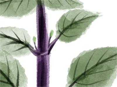 紫苏叶,唇形科,塔花族,双子叶植物纲,为一年生、直立草本,南方7至8月,北方8至9月。茎高0.3-2米,绿色或紫色,钝四棱形,具四槽,密被长柔毛。紫苏和野紫苏的叶带叶小软枝。 枝叶茂盛时收割,摊在地上或悬于通风处阴干,干后将叶摘下即可。叶片多皱缩卷曲,完整者展平后呈卵圆形,先端长尖或急尖,基部圆形或宽楔形,边缘具圆锯齿,两面紫色或上面绿色,下表面有多数凹点状腺鳞,叶两面绿色,暗绿色或带紫色协定缘具圆锯齿。叶柄紫色或紫绿色,质脆。嫩枝紫绿色,断面中部有髓,气清香,味微辛。均以叶完整,色紫、香气浓者为佳。