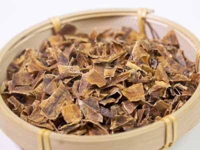 呈长条状薄片,边缘略卷;体表灰褐色或灰棕色;气味腥臭。