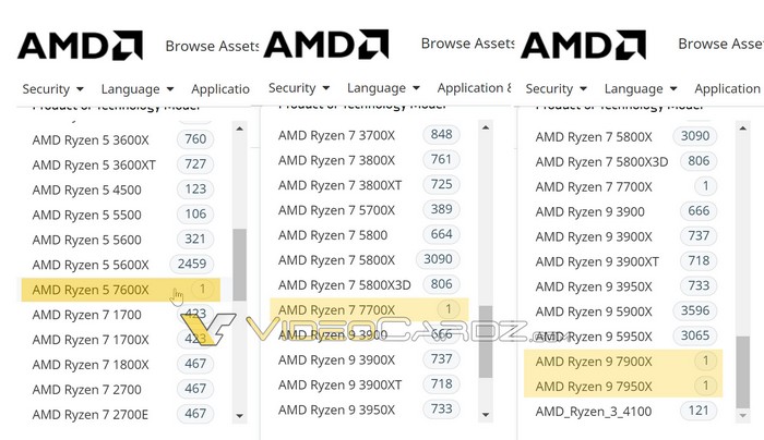 即将登场的AMD Ryzen 7000系列锐龙看来是已经准备好了。今天有网友在AMD官网发现,AMD已经列出了即将推出的Ryzen 7000系列型号,包括Ryzen 9 7950X, 7900X, Ryzen 7 7700X 和 Ryzen 5 7600X 共四款。