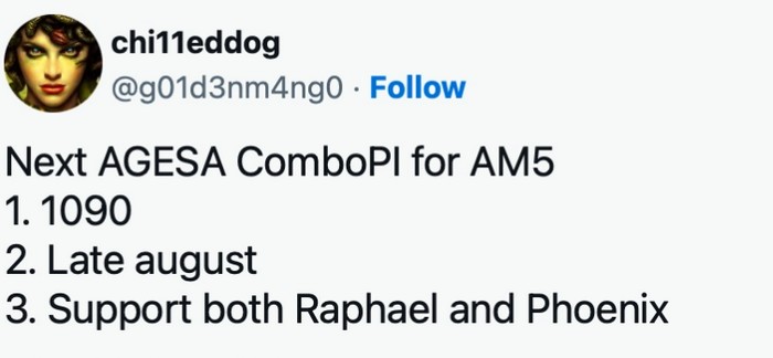 有爆料者称,AMD将在最晚8月份,为 AMD AM5 平台更新 AGESA 微代码(版本号AGESA 1.0.9.0),将支持 Raphael“拉斐尔” 和 Phoenix“凤凰”架构CPU。