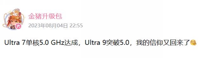 英特尔9月要发布的第 14代酷睿 Ultra 又传来了新料。据国内知名爆料者@金猪升级版消息,第14代酷睿 Ultra 7系列单核睿频高达5GHz, 酷睿 Ultra 9 家族更高。