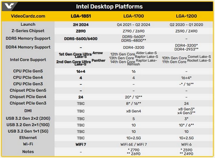 就目前消息,英特尔新的 LGA 1851 平台有七个:Z890,B860,H810,W880和Q870等,可能不会有H870平台。