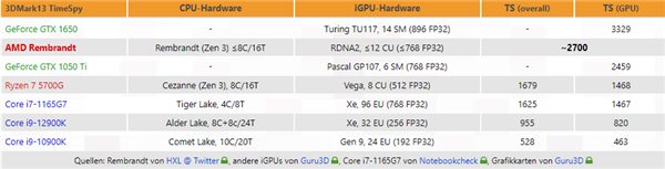 反倒是GPU部分,用了好多年的 Vega 终于被抛弃了,新的Ryzen 6000系列APU会采用 Navi2 核心,基于RDNA2架构,具体规格未知,但日前有锐龙6000系列APU跑分泄露,DX12的TimeSpy得分在2700左右。