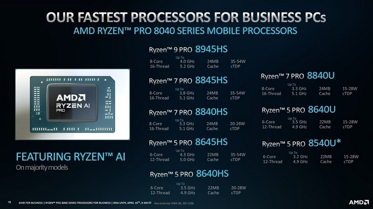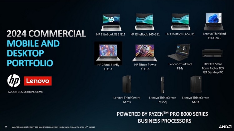 最后,搭载 Ryzen Pro 8000/8040 系列 APU 处理器的商用台式机和商用本将于年内发布(等于没说),惠普、联想等会率先公布了相关机型。
