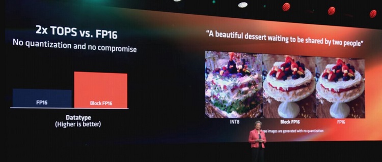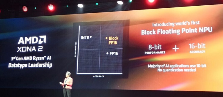 据了解,新一代 Ryzen AI 300 系列的算力最高可达到50TOPS,而且支持新的块状 FP 16位运算,8位INT 性能,FP16精度,而无需量化。