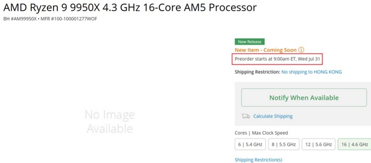 目前新 Ryzen 9000 系列四款已经悄然上架,时间定在7月31日(开启预订),还公布了价格,如下。当然,和以往一样,这大概率只是为了占位,所以仅供参考,后续我们还会持续关注。