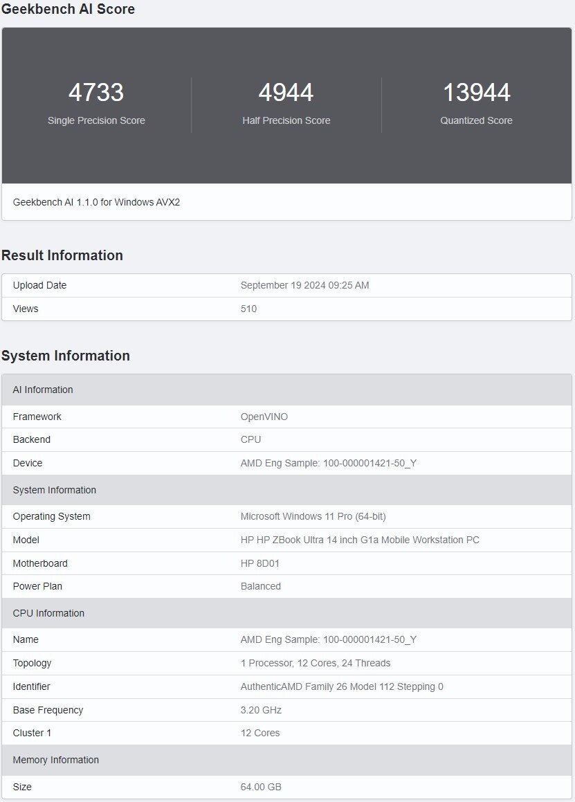 据外媒消息,还未发布的 AMD Strix Halo 处理器已经出现在 GB AI 跑分中,惠普新一代 ZBook Ultra 14 G1a 移动工作站打造,据知情人士称,这是 Ryzen AI Max 390 的测试版。
