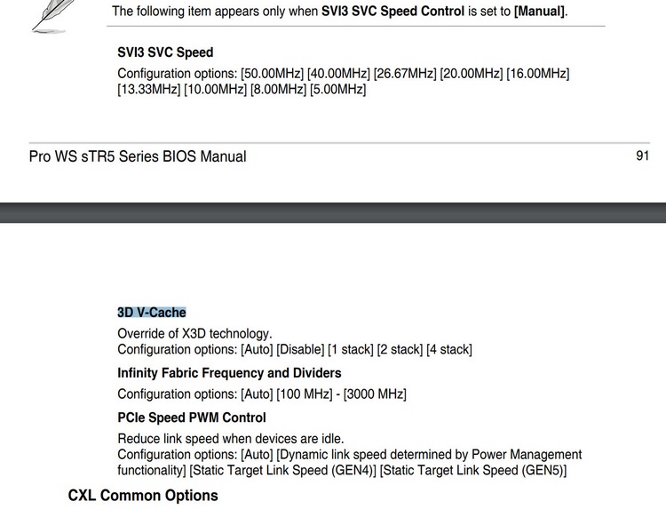 据外媒 VC 挖掘消息,在华硕 Pro WS sTR5 系列主板的BIOS 用户手册发现了“3D V-Cache”的相关选项,这意味着未来的 Ryzen Threadripper “线程撕裂者”系列处理器,也就是 Ryzen Threadripper 9000WX/X系列,可能会增加3D缓存,型号后缀或出现像“ X3D ”字样。