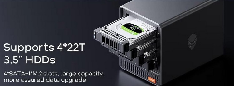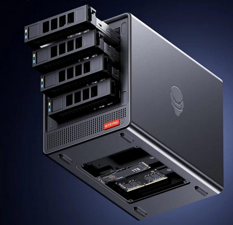 外观不变,依旧是四盘位,内还可以扩展 M.2 SSD。去年发布时,采用 N100 处理器和 AMD Ryzen 7 5825U,现在又带来了 N150( Twin Lake 架构),CPU和GPU 的频率都有拉升。