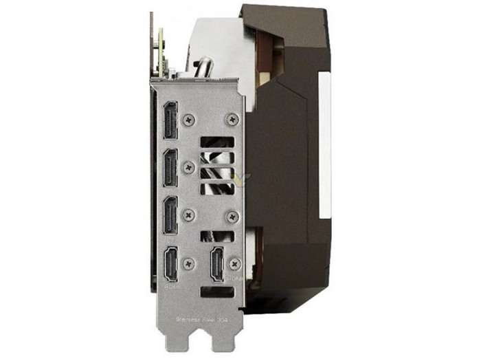 另外,背后有背板,提供双8Pin外接供电,尾部有3个DisplayPort 1.4 和 双HDMI 2.1 输出。