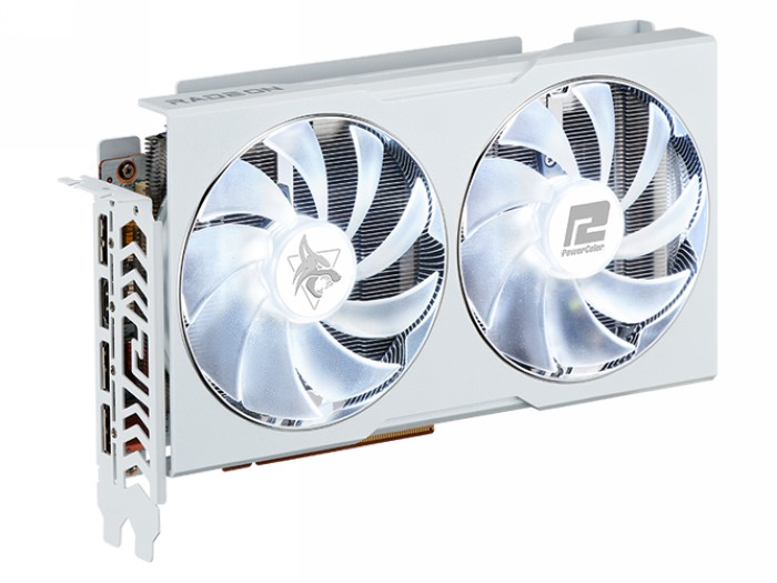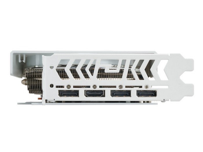 配备双风扇散热器,白色风罩,半透明白色风扇,集成白色背光,背板是白色的,就连PCB也是白色的,总之非常适合白色主题平台选择。风扇支持智能启停,当核心低于60°C时停转,完全0噪音运行。显卡尺寸为:长232mm、宽150mm、厚45mm,占用双槽空间。
