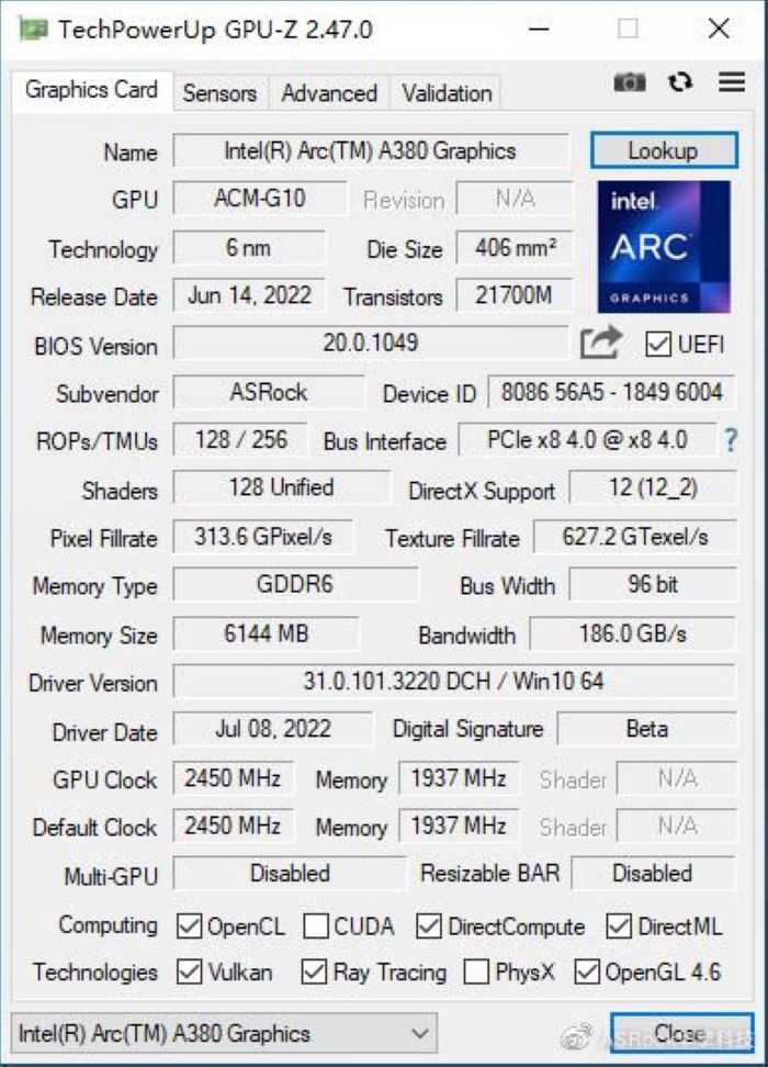 作为一个有着多年经验的主板生产商,华擎早在2018年就进入显卡市场,开始生产A卡,今年Intel发布了自己的独立显卡芯片A380后,华擎也继续进军Intel显卡,为大家带来了一张A380 挑战者 ITX,接下来开始测试一下。