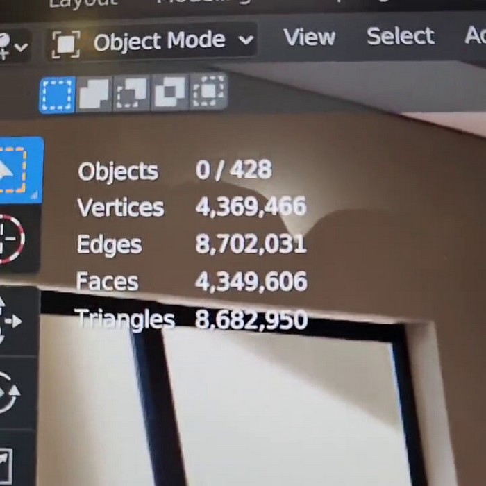 使用 oneAPI 在 Blender 3.3 LTS 中测试渲染性能,结果显示场景里有4369466个顶点、8702031个边、4349606个面和8682950个三角形,不过暂时没有对比其他显卡的成绩。