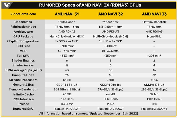 据此前传闻,AMD RX 7900XT 应该配备完整的 Navi 31 核心,包括 12288 个流处理器。GPU 使用一个 GCD(图形芯片)和六个 MCD(缓存芯片),应该会拥有多达 96MB Infinity Cache无限缓存。