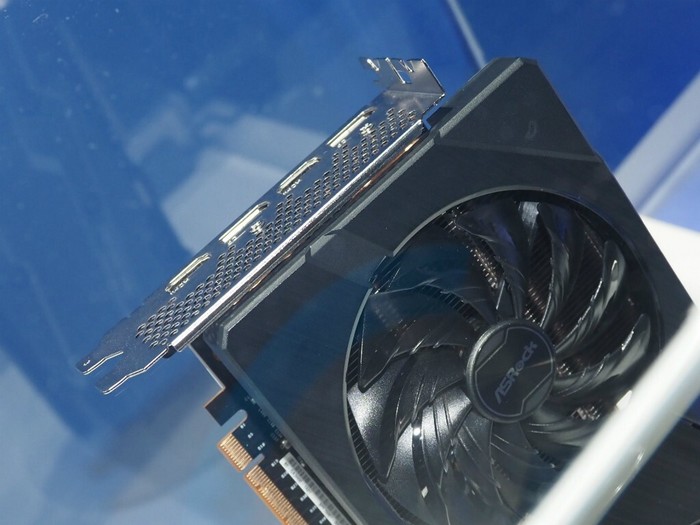初看和目前在售的华擎非公卡差不多,双风扇散热模组,就个头来看,预计 PCB 没有比 A380 大多少。