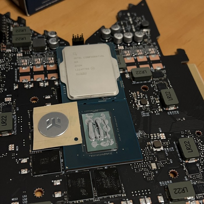 如图,采用异形PCB板,整个AD103核心个头不小,对比某第12代酷睿处理器大小差不多(算基板),核心面积可能比CPU的还要大一些。