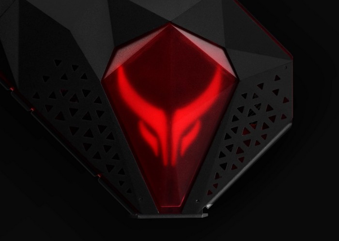 另外,风罩有红色背光装饰,侧面有红魔标志性背光LOGO,而背板是钻切设计,背后有个很醒目的红魔背光LOGO。