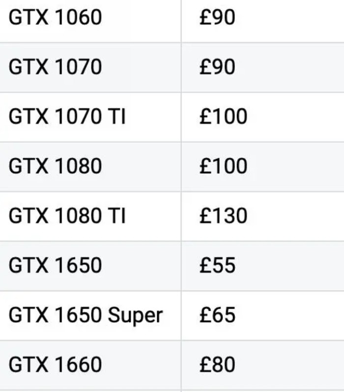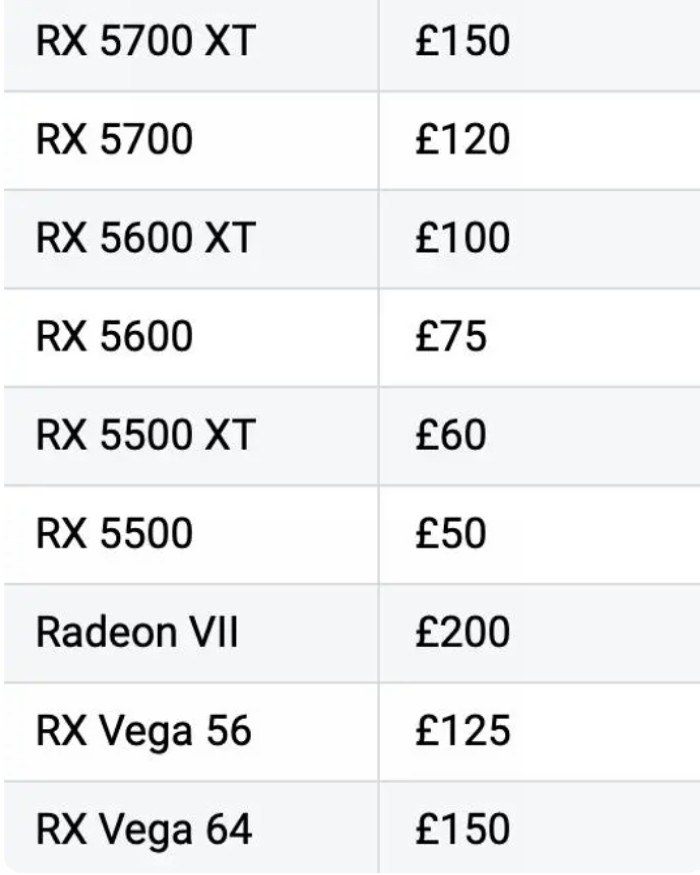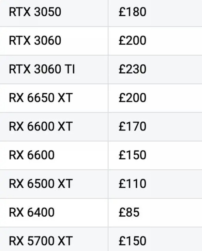 这次能抵价的显卡很多,不只是 RTX 30 系列,还有更老的 RTX 20和GTX 10以及16系列,甚至AMD的显卡也可以抵价,但是价格给的有点就非常低了,并不划算。
