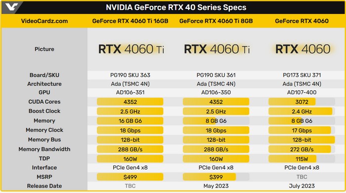 即将发布的 RTX 4060 Ti 配置规格已经全部“挖”完,就差一个价格了。
