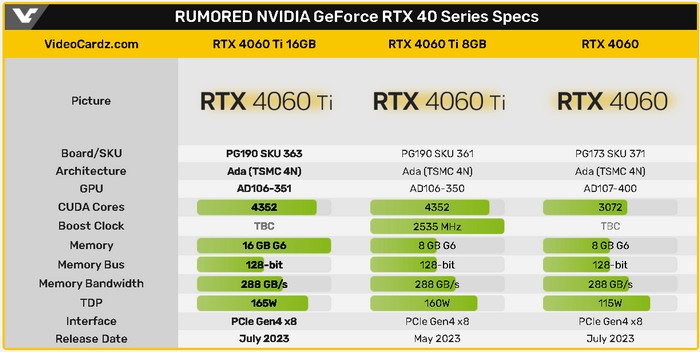 RTX 4060 系列将于5月24日发布,有三款,但首发只有标准版RTX 4060 Ti 8GB,而RTX 4060和RTX 4060 Ti 16GB 版本要等到7月才会上市,因此今年暑假会有主流级RTX 40系列显卡,但是否能获得青睐,关键还是要看价格。
