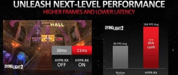 之前AMD演示看到,开启后《消逝的光芒 2》通过将帧速率从 90 FPS 提高到 166 FPS,将性能提升 85%。此外,延迟从 30 毫秒减少到 11 毫秒。