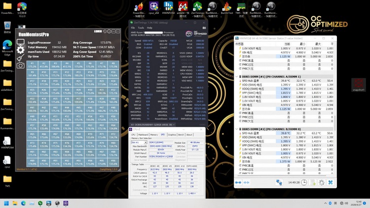 单条48GB,4个为一组总容量192GB,虽然频率只有 6400MHz 和 6000MHz 两种,但分别只有 CL30(CL30-39-39-108,电压1.4V)和CL28(CL28-36-36-102,电压1.4V)超低时序。
