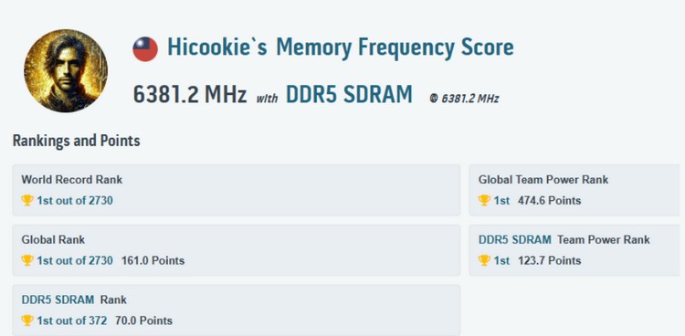 威刚今天宣布,旗下 DDR5 内存超频创下了新的世界纪录——12762MHz。