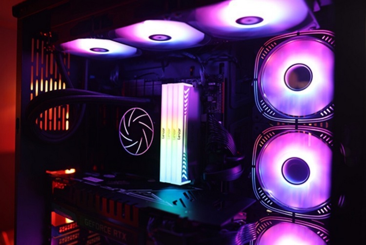 外观设计还不错,有银或黑两个配色,都配备硕大的散热片和导光条,散热片厚1.8mm,导光条内有8个可寻址灯珠,支持 RGB 自定义或背光同步灯效。