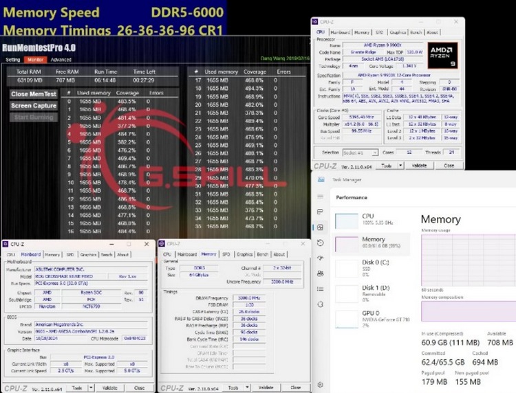 下面是在华硕 ROG CROSSHAIR X870E HERO 主板和锐龙 9 9900X处理器平台下的测试: