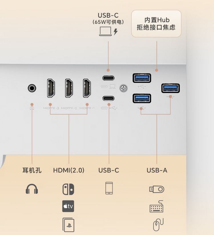 扩展方面:有3个HDMI 2.0、双全功能 USB-C(65W)、USB 3.2 Gen 1 TYPE-C、3个 USB 3.2 Gen 1 TYPE-A 和耳麦插孔等。