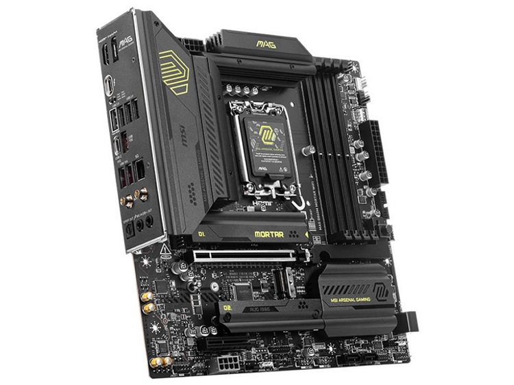 最后,还有一块M-ATX 紧凑型 B850主板——MAG B850M MORTAR WIFI,属于“迫击炮”系列,风格和上面的一样,用料依旧满满当当,提供12+2+1 相供电,四条 DDR5 8400MHz 内存槽,储存和扩展没说,也支持 WIFI 无线,尾部有 5G 有线扩展。