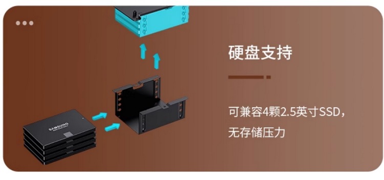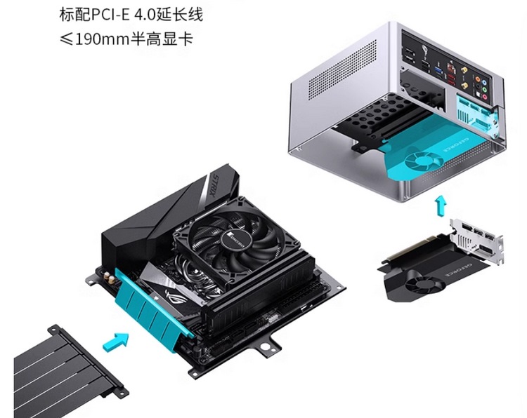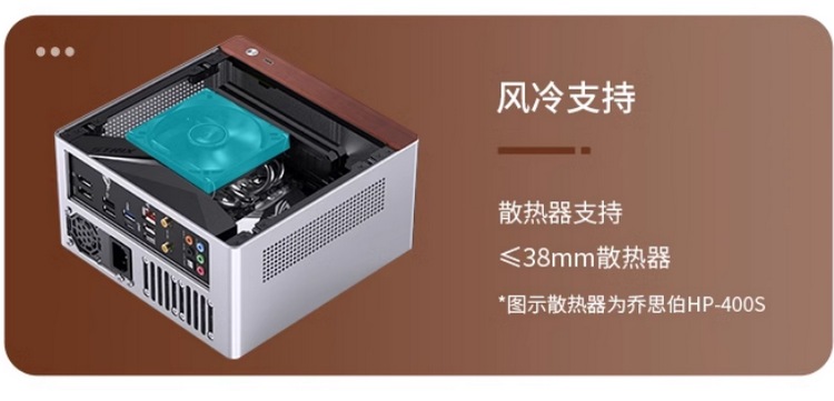 内支持 ITX 主板,只能上下压式散热器,限高38mm,还好可选的散热器并不少。