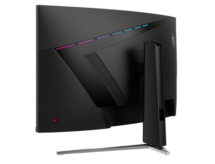 颜值很高,大曲率面板,支架用料和设计都还不错,背后还带有“神秘之光” RGB 灯效,支持背光同步。支架可以多向调节(10cm升降、水平和俯仰角调节,不支持垂直旋转),也支持 VESA 100mm 壁挂。