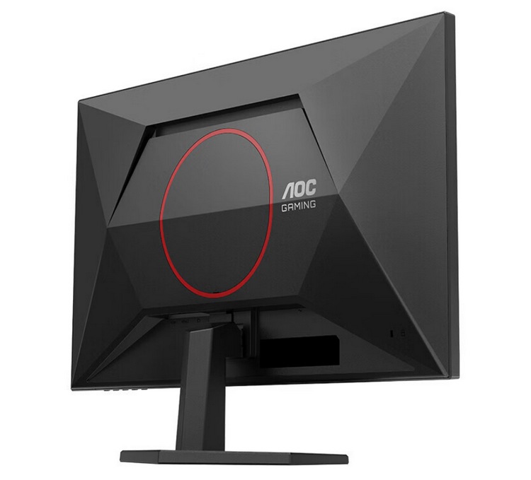 外观相对一般,几何钻切风格,三边窄边框(6.2mm),但支架不能多向调节,只能简单俯仰角,或者 VESA 100mm 壁挂。