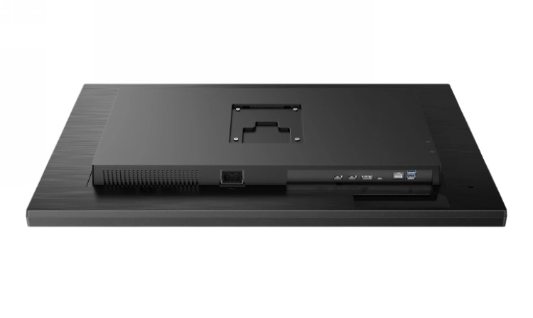 很规整,也没有任何装饰,三边边框略宽,背后有拉丝铝合金面板,总体而言是浓浓的商务屏风格。自带支架可以多向调节(18cm升降、水平和俯仰角调节),也支持快拆,也支持 VESA 100mm 壁挂。