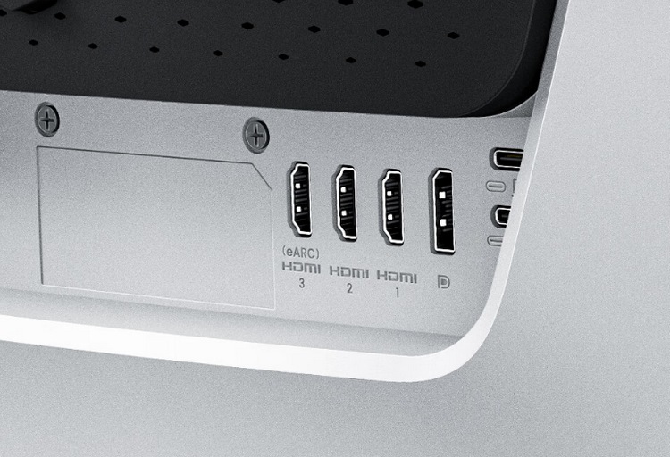 扩展包括:三个HDMI 2.1和一个 DP 2.1,以及3个USB-A、全功能USB-C(65W)和3.5mm插孔等。值得一提的是,支持 aARC 音频回传技术,可以单独分离出PS5、PC 等设备输出的音频信号。经过HDMI 2.1 接口传输至支持 eARC 的音响,功放设备打造家庭影院级别的游戏试听体验。
