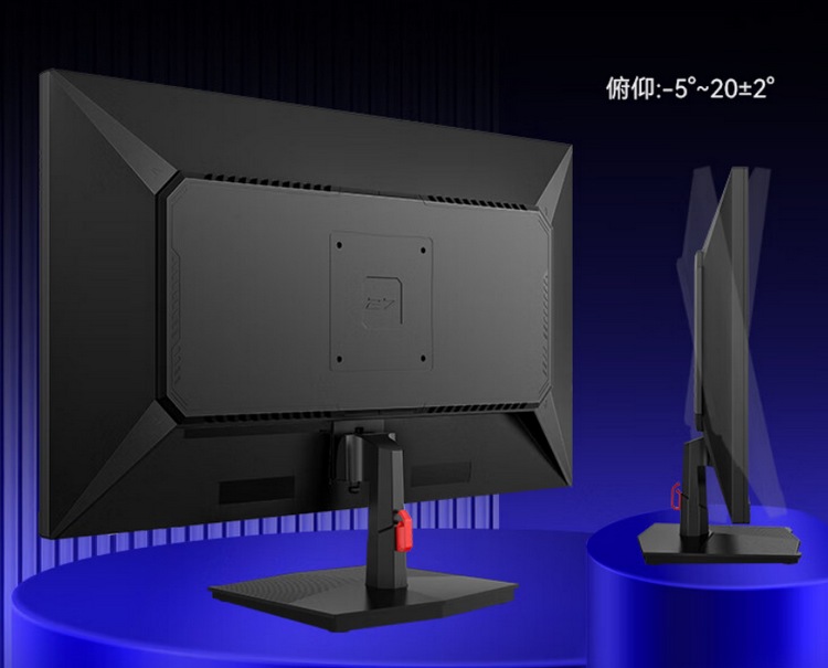 外观还行,三边窄边框,不过支架只允许简单俯仰角,带有束线夹,支持VESA 壁挂。