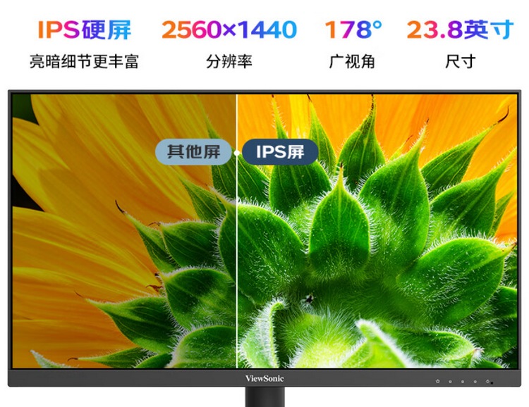 优派也带来一款入门级办公屏——VA2479-2K-HD,也是24英寸大小,IPS 硬屏,2K分辨率,刷新率低一些,但色彩还行,重点是更便宜。