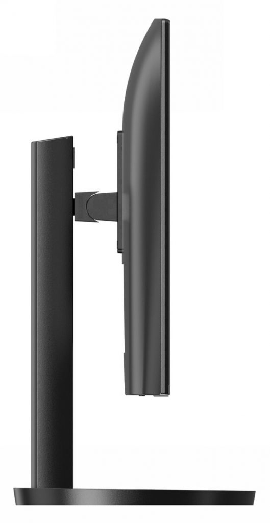 设计的很简约,通体黑,圆形底座,三边窄边框,支架可多向调节(11cm升降, -5/20° 俯仰角),也支持 VESA 100mm 壁挂。