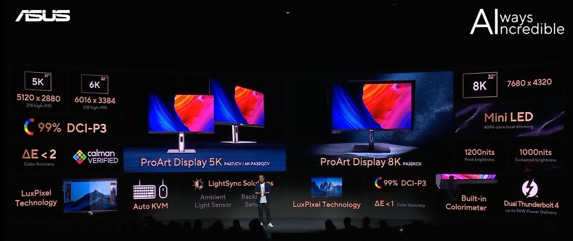 想要更好的话,可以看看 ProArt PA32KCX ,准 8k 分辨率(7680 x 4320),而且是MiniLED 背光技术,这次终于是发布了。该屏拥有 99% P3广色域,色差<1,1200尼特峰值亮度,也有有“LuxPixel”防眩光技术,提供双雷电4接口。