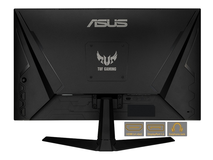 外观比较战斗,窄边框,背后有犀利线条和TUF LOGO,设计灵感来源于隐形战斗机外形,具有极强的力量感。不过支架只可以-5~23°俯仰角调节,无法旋转和升降,不过好在可以 VESA 100mm 壁挂。机身尺寸为615mm、194mm、高453mm、重4.47kg。