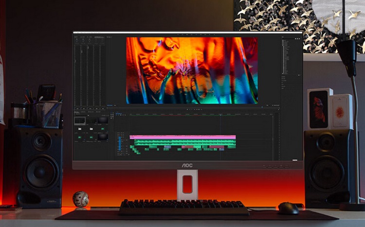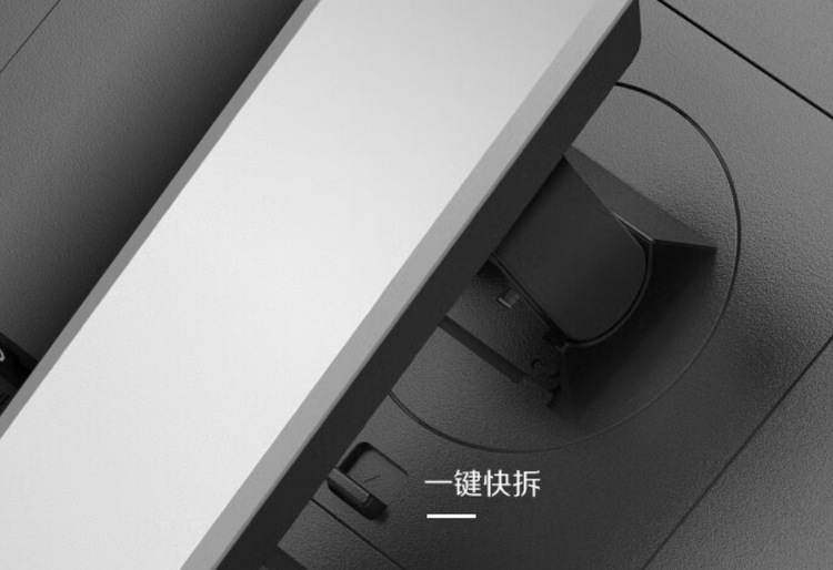 外观像专业设计屏,灰黑配色,屏幕三边窄边框(5.8mm),支架可以多向调节和快速拆卸,可以垂直90度旋转当竖屏用。