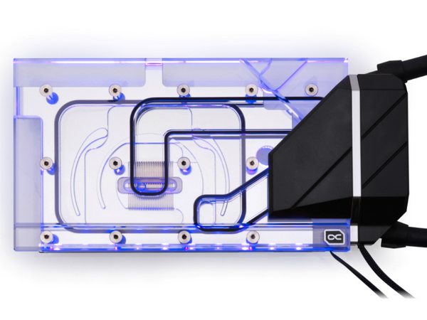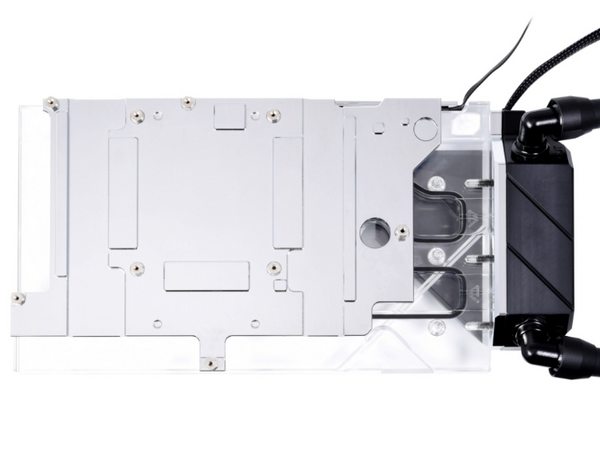 水冷头部分,采用高品质电解铜,全镀镍处理,一体覆盖式设计,除GPU核心外,还能接触到显存、供电部分,这是许多第三方一体式显卡水冷头做不到的。