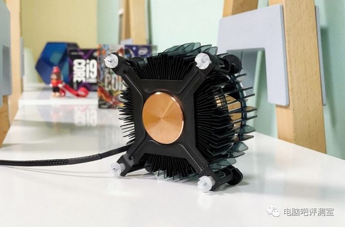 据电脑吧评测室消息,英特尔 RM1原装散热器将与第12代酷睿i3、i5 和 i7 非K版本一起捆绑发售。外观用料上,相比多年来的散热器要明显高大许多,用料也更好,采用铜芯底座,散热片全黑化,不过颜值还有改进空间,没有任何背光装饰,只有一个蓝色环圈儿,比带灯的AMD锐龙幽灵散热器要逊色一些。