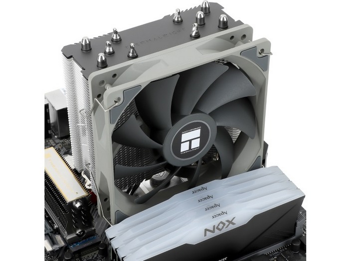 利民AK120 SE整体设计、结构延续家族设计,也属于紧凑型超薄单塔,设计相对复古,顶部有黑色饰板装饰,风扇也从标准版的全黑变成了经典灰黑配色。