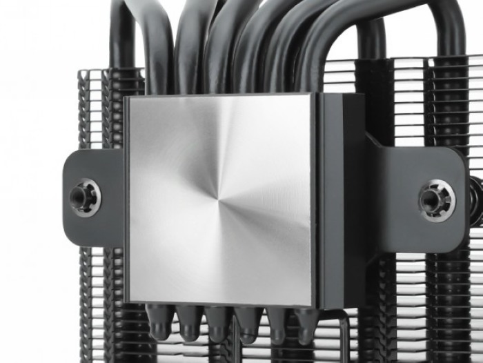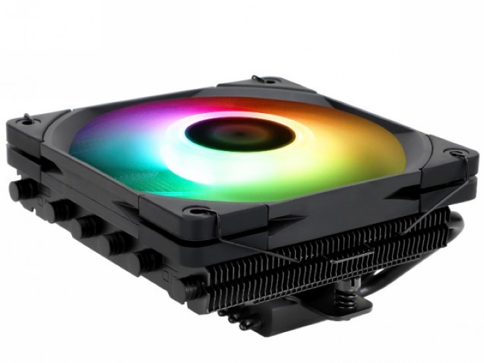 新的 AXP120-X67 ARGB 黑化/白化版整体设计、用料不变,通体黑化,高度仅为 67 mm ,重量490g(含风扇)。配有超薄风扇,不干涉旁边内存扩展。用料还不错,有6根6mm直径热管,底座也黑化抛光处理,采用镀镍C1100电解铜材质,热管与鳍片之间回流焊工艺,提升导热效率。