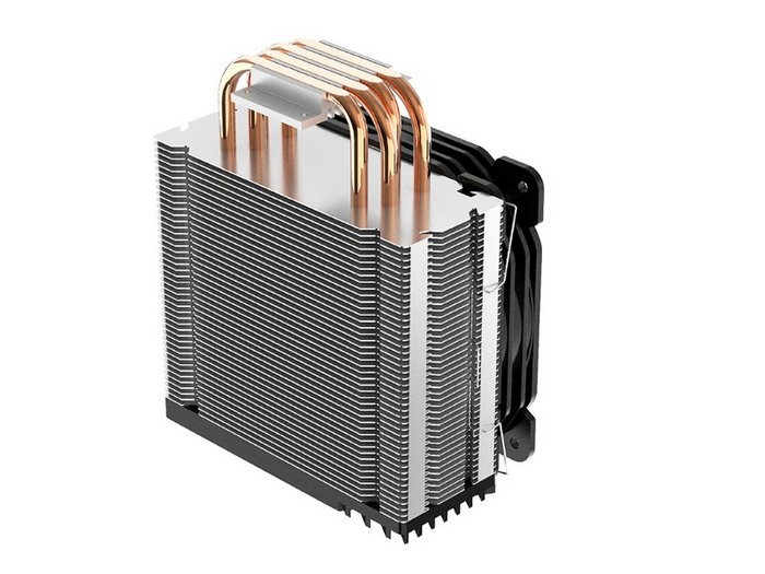 配有4根6mm直径热管,非镀镍,与鳍片之间是穿Fin,底座直触式,提升导热效率。官方没有透露性能,对付不超频U肯定没问题。