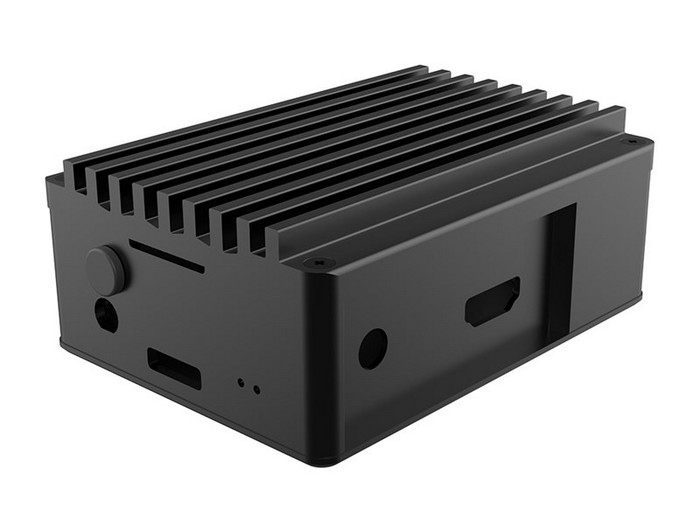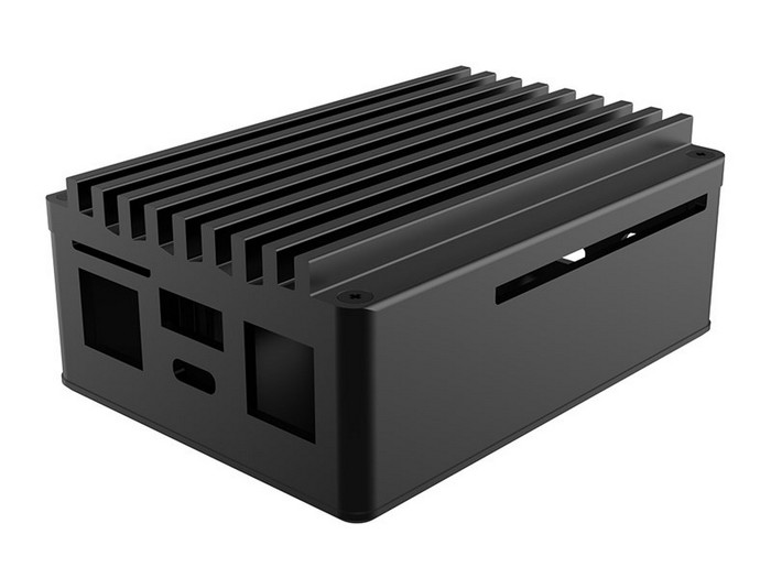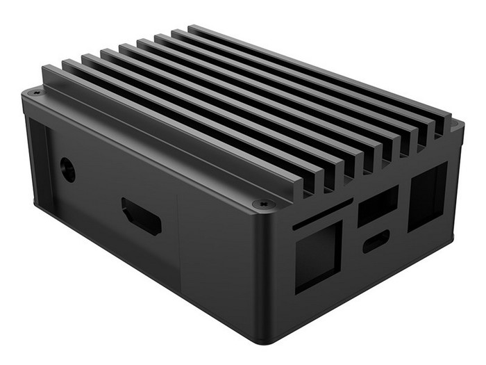 全铝机身,阳极化通体黑,顶部是散热鳍片,完全被动散热。